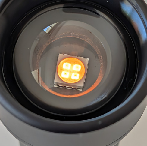 The RF 05B has an interesting LED, which appears to be quad core, with warm white emitters within the centre of the core, and cool white emitters on the outside of the core. By adjusting the ratio of light from the cool and warm emitters, the CCT can be adjusted from 1900K very warm white, to 8000K cool white. Unlike the 10W zoom light with white, orange, blue, and red LEDs, and 12W zoom light with RGBWW emitters, this light doesn't have any colour LEDs, only adjustable CCT (bi-color). However, given that I mainly use the white light output on my 10W and 12W zoom lights, I don't think this is a bad thing! There are however red, green, and blue gel filters available with the light. Due to the centered LED, the beam is perfectly circular, unlike the slightly off-centre/elliptical beam on the RF 10C. The zoom lens is of an aspheric design.
